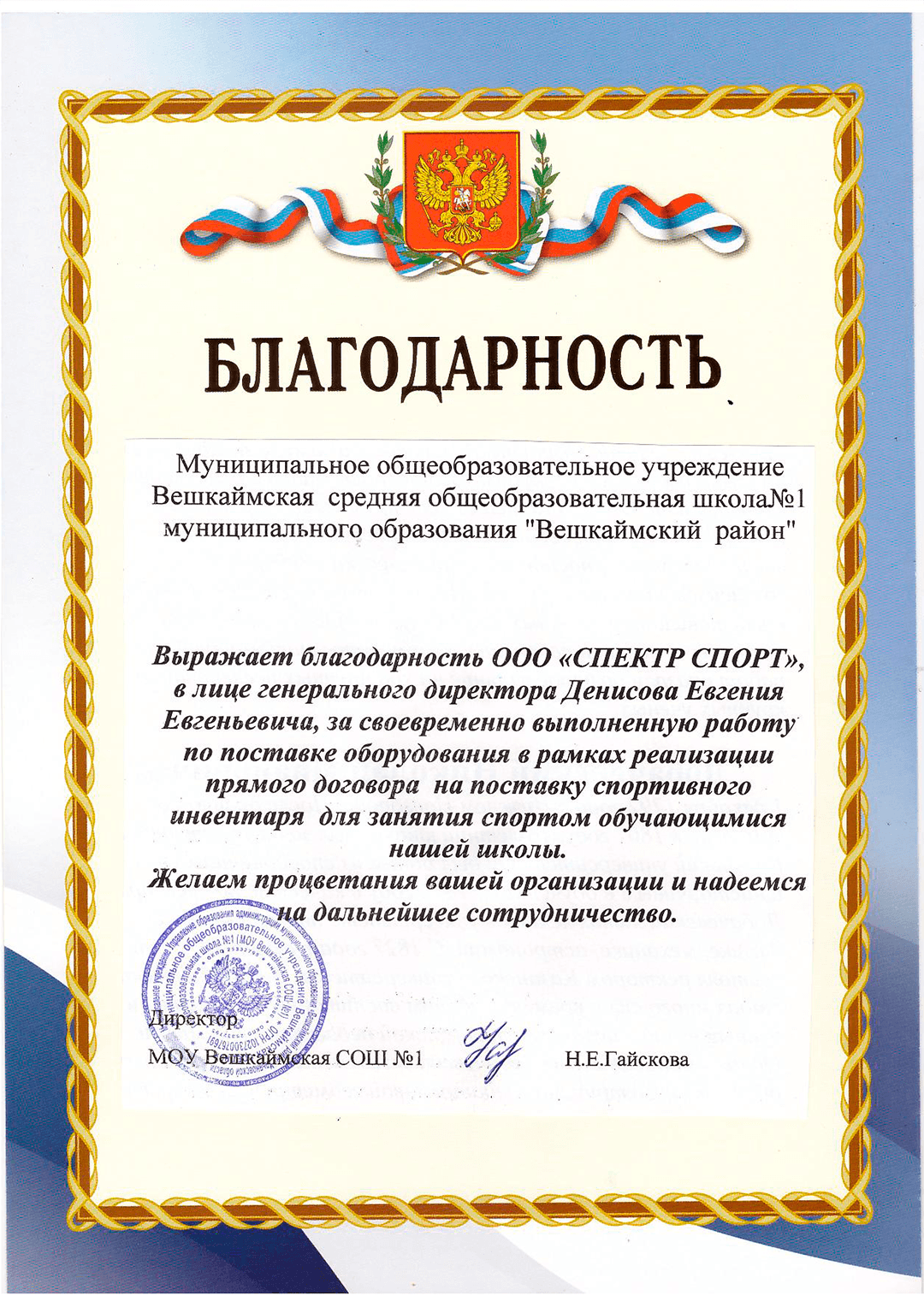 Благодарственное письмо
